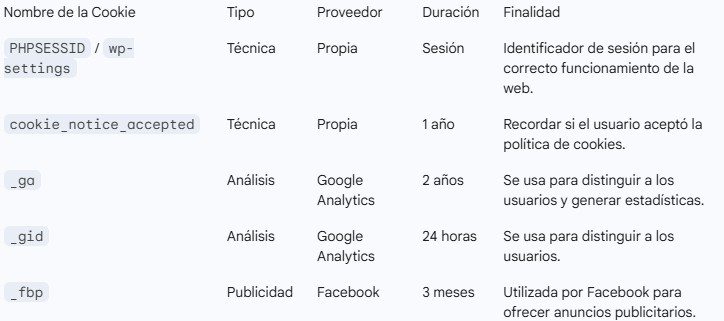 Esta web puede utilizar servicios de terceros (como Google Analytics o mapas de Google Maps) que recopilan información con fines estadísticos y de uso de la web.