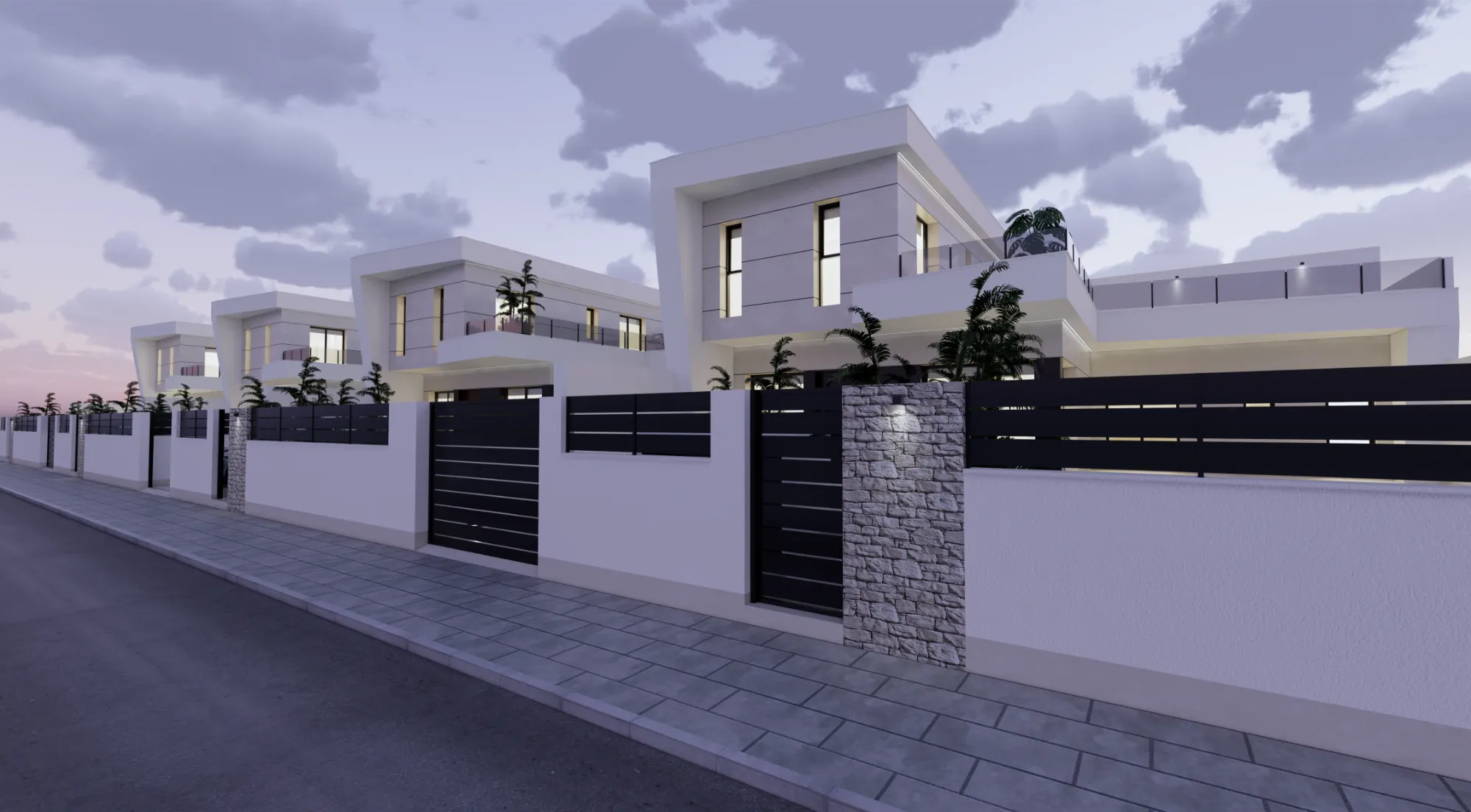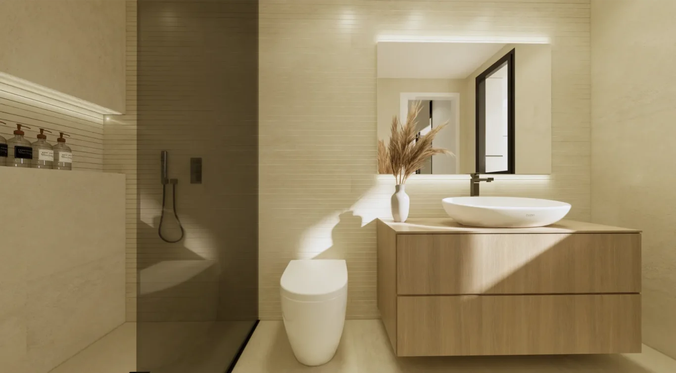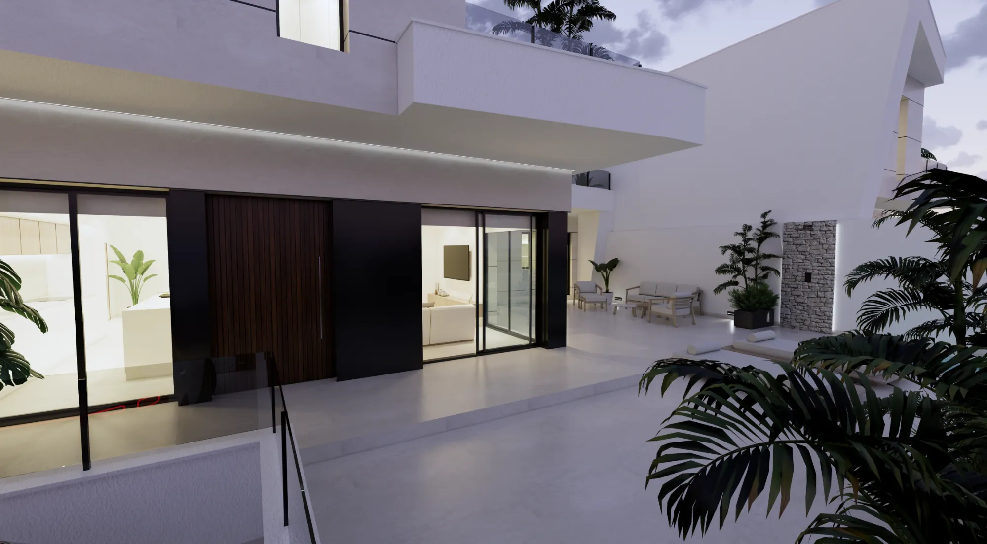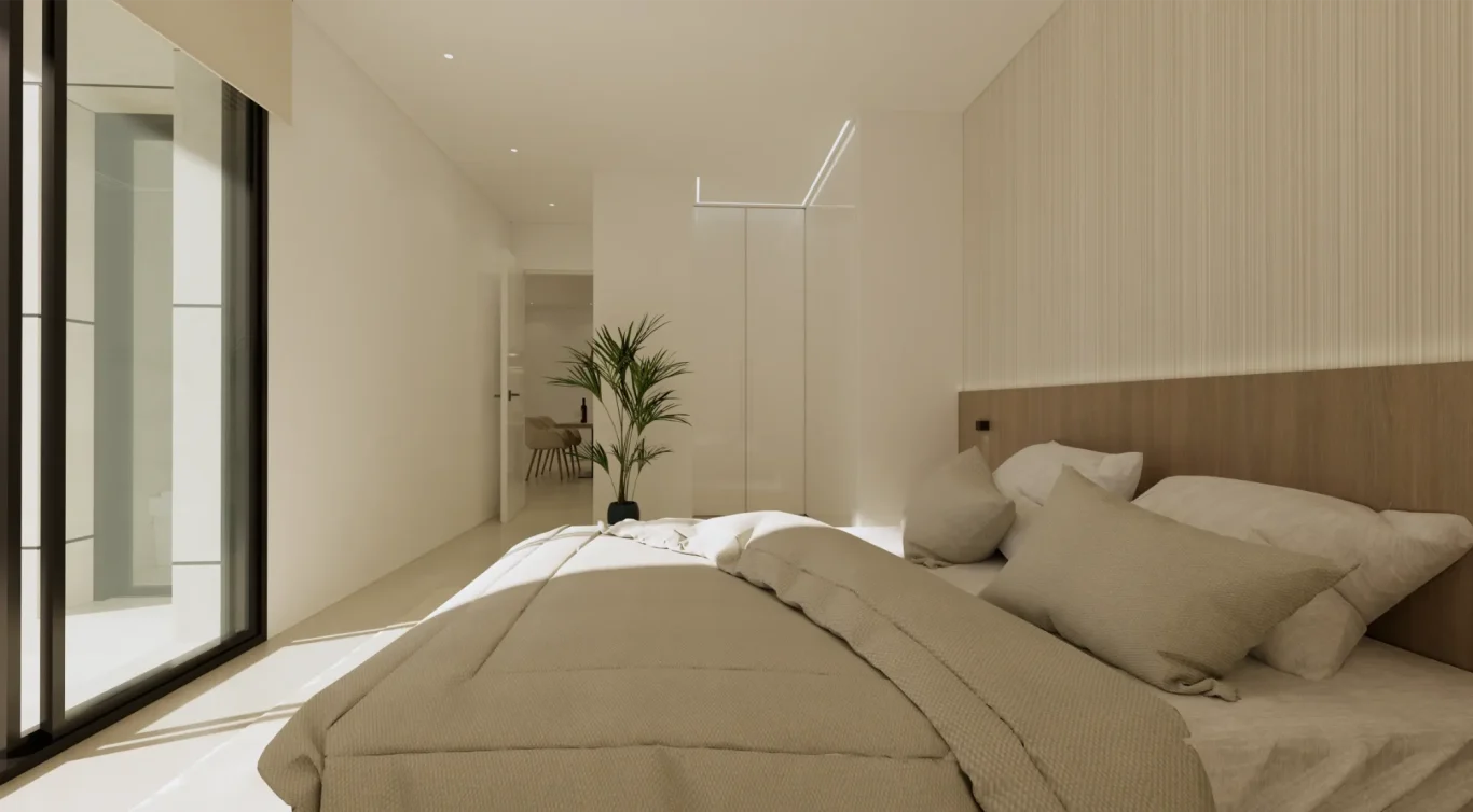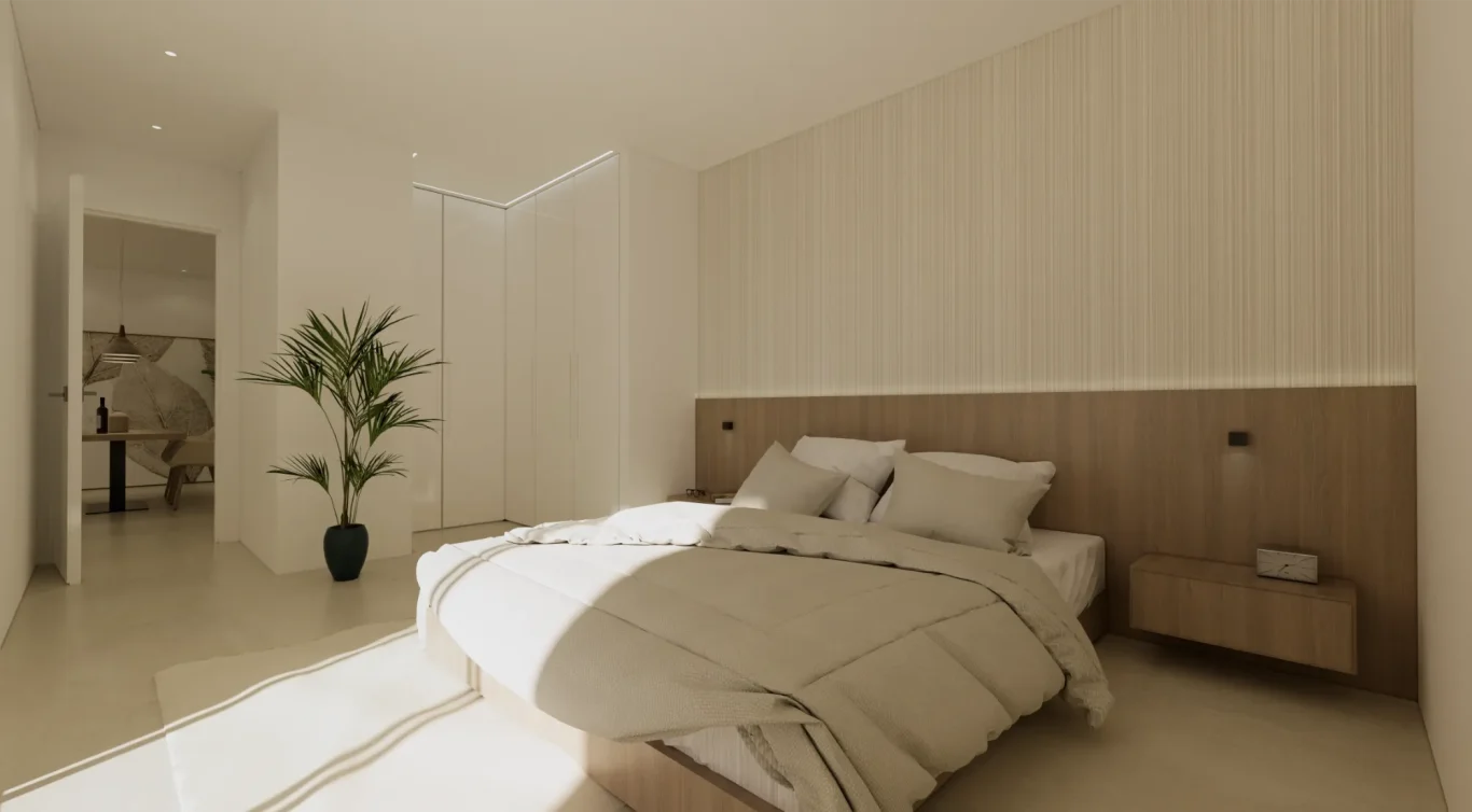 Vida exterior de lujo: Cada villa cuenta con una piscina privada con cascada, amplias terrazas tipo solárium y zonas ajardinadas, creando un espacio perfecto para el relax y el ocio.