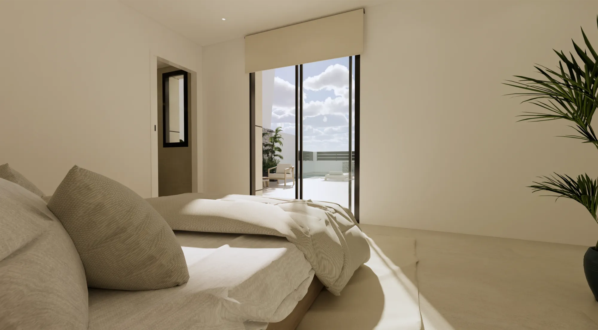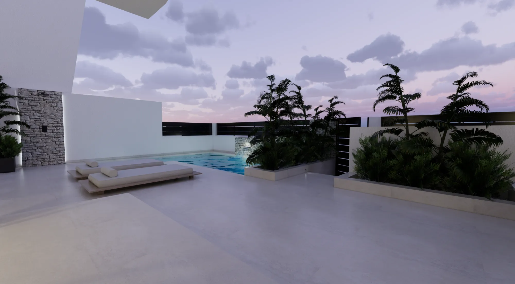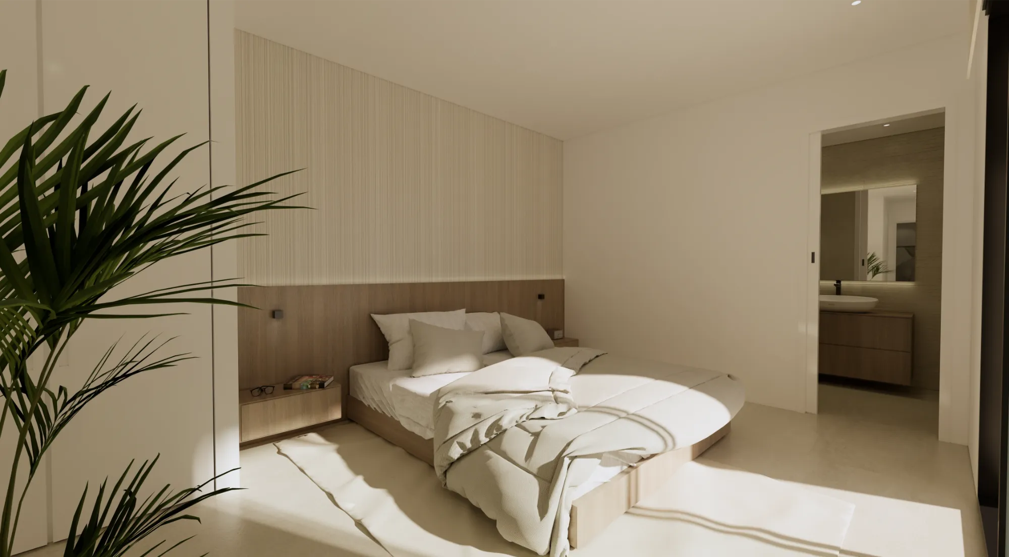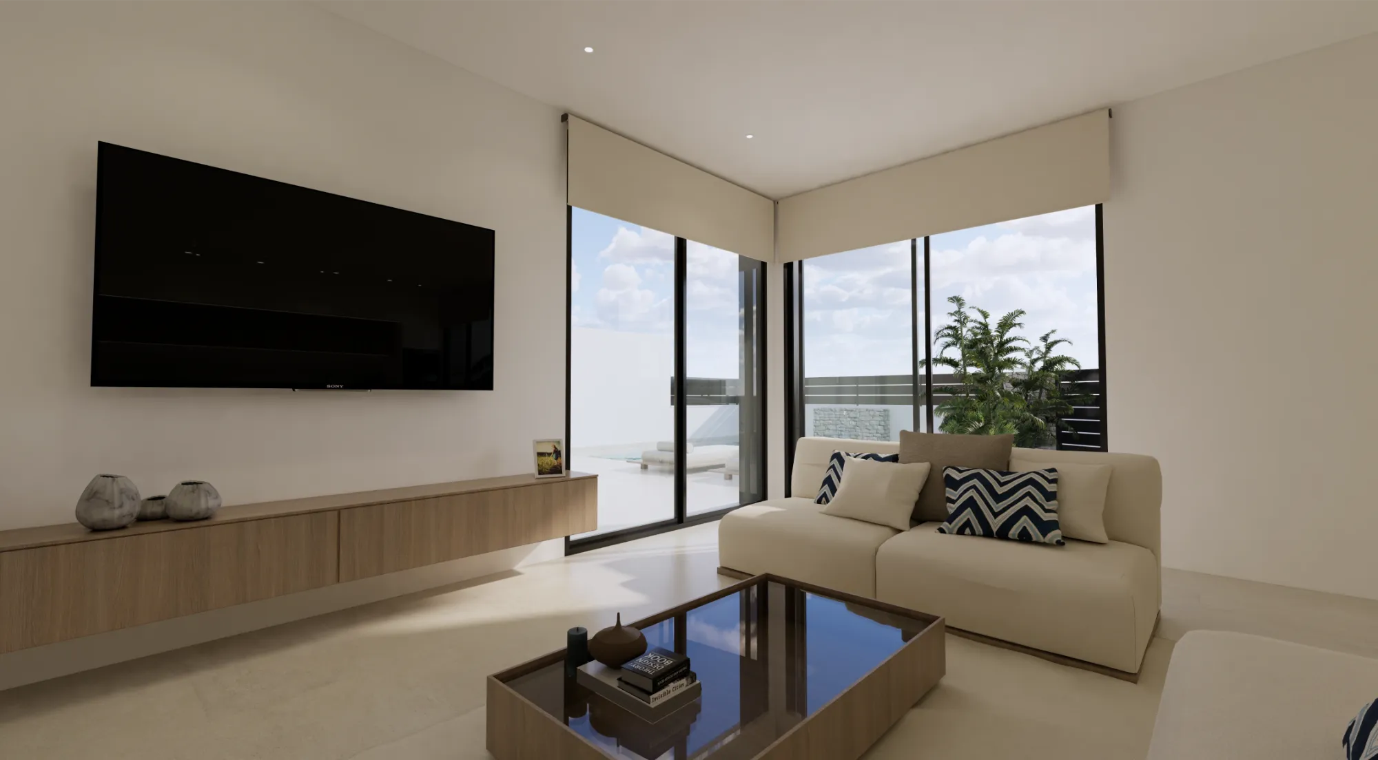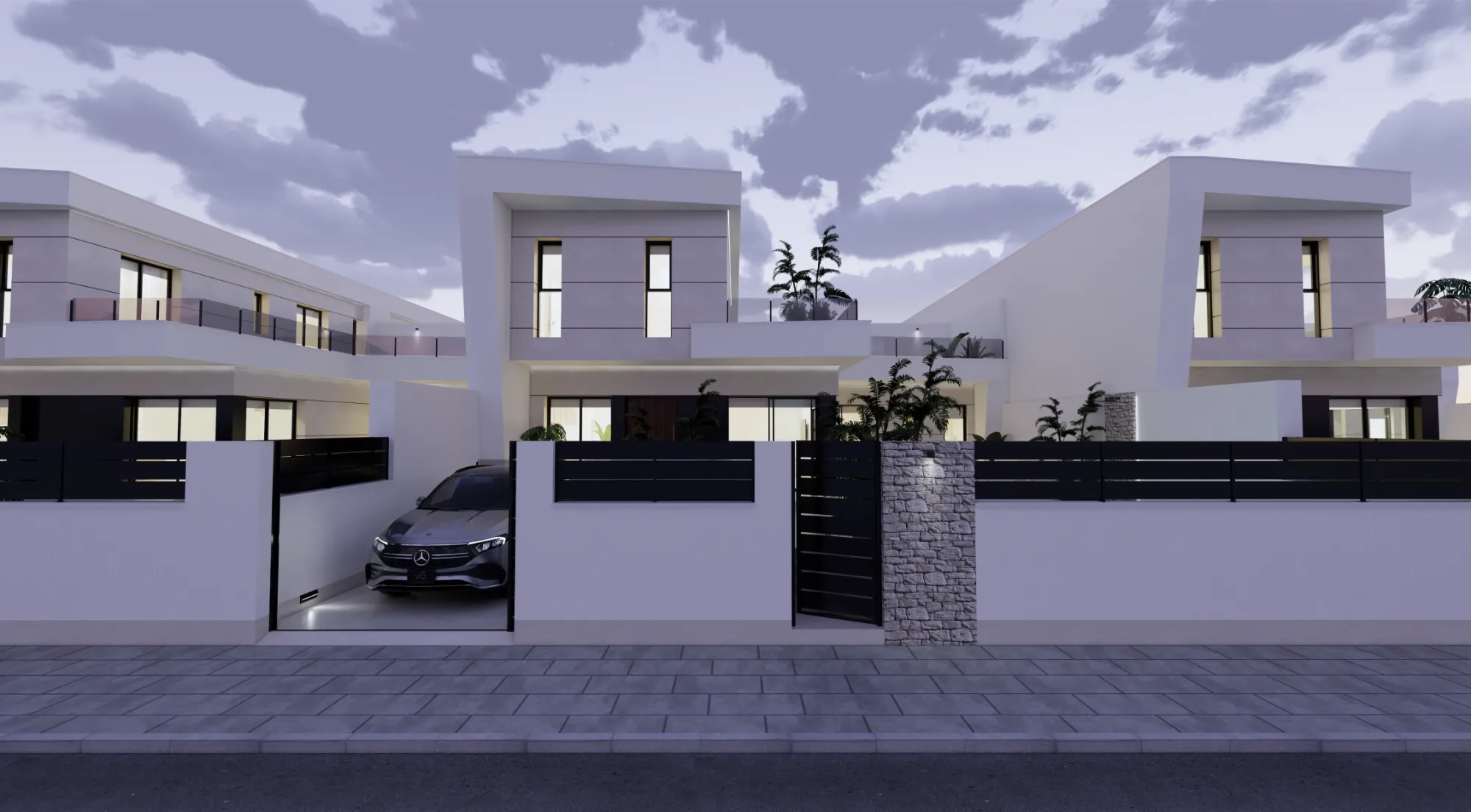 Vida exterior de lujo: Cada villa cuenta con una piscina privada con cascada, amplias terrazas tipo solárium y zonas ajardinadas, creando un espacio perfecto para el relax y el ocio.